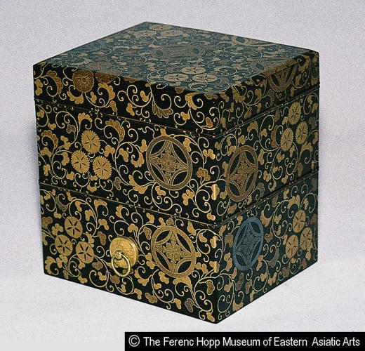 七宝ニ剣花菱紋散撫子唐草蒔絵香具箱/ Box for incense utensils with crests, pinks, and karakusa |