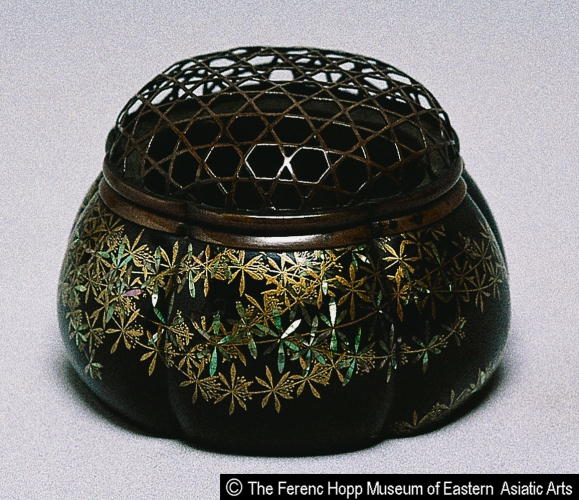八重葎蒔絵螺鈿阿古陀香炉/ Incense burner in the shape of an akoda melon with design of catchweed |