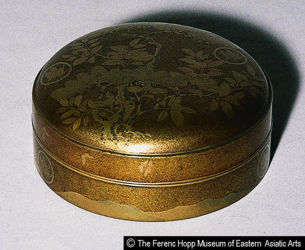 揚羽蝶紋散松牡丹蒔絵鏡箱/ Mirror box with scattered swallowtail crests, pine, and peonies |