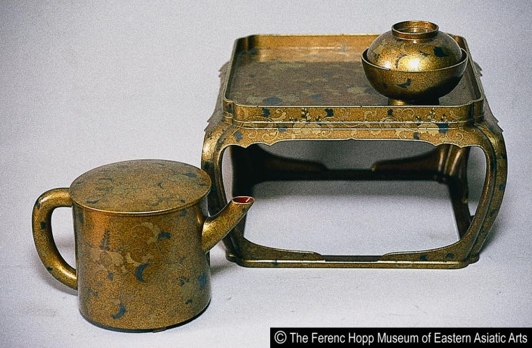 桐唐草蒔絵懸盤(附水次・汁碗)/ Tray table with design of paulownia and karakusa (with pitcher and bowl) |