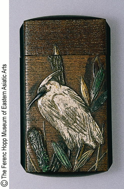 芦鷺嵌装印篭/ Inroo with design of heron and reeds |