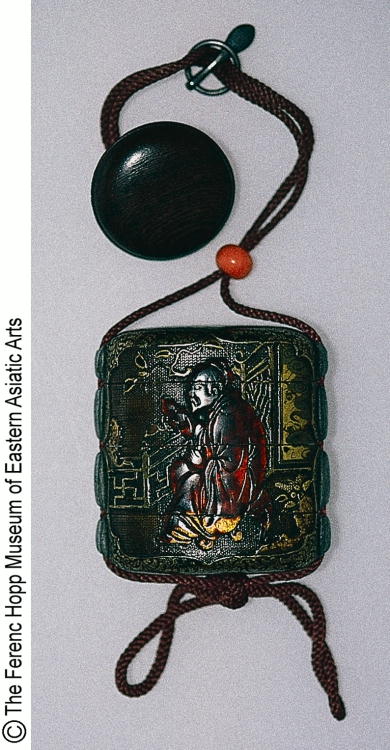 唐人図玳瑁貼印篭/ Inroo with scene of Chinese figures |