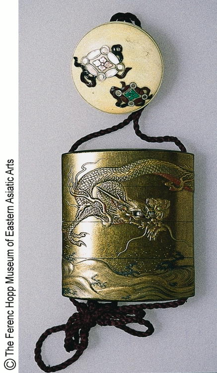 龍涛蒔絵印篭/ Inroo with design of dragon and waves |