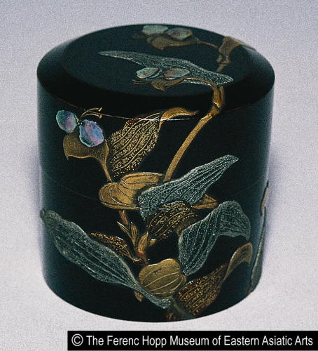 露草蒔絵螺鈿中次/ Tea caddy with design of dayflowers |