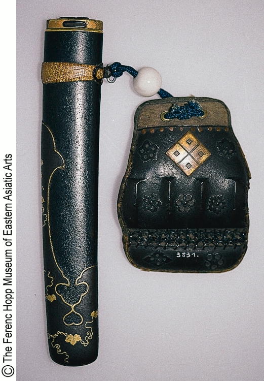 鎧袖形煙草入並びに刀鞘形煙管入/ Armor-shaped tobacco container and scabbard-shaped pipe holder |