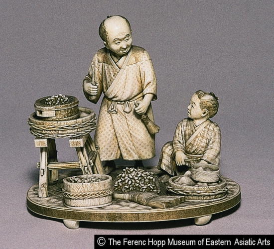 臼挽き/ Man and Boy Using a Hand Mill |