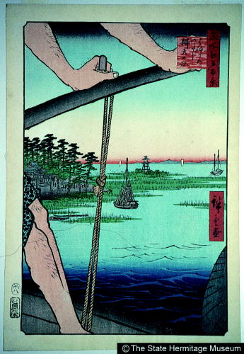 名所江戸百景 はねだのわたし弁天の社/ Meisho Edo hyakkei Haneda Ferry and Benten Shrine |
