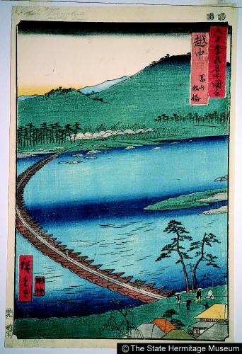 六十余州名所図会 越中 富山船橋/ Rokujuu yoshuu meisho zue Toyama Floating Bridge, Etchuu |