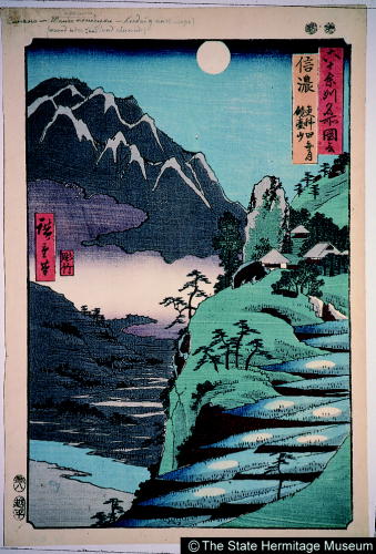六十余州名所図会 信濃 更科田毎月鏡台山/ Rokujuu yoshuu meisho zue Moon over Kyoodaizan and the Rice Fields of Sarashina, Shinano |
