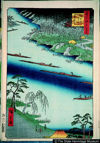 名所江戸百景 川口のわたし善光寺/ Meisho Edo hyakkei The Kawaguchi Ferry and Zenkooji Temple |
