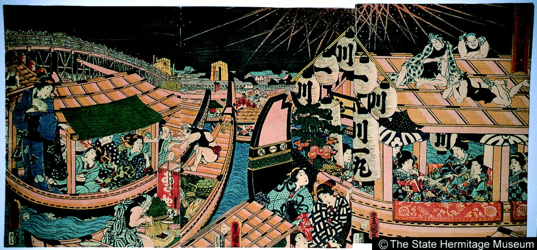 作品名 東都両国橋川開繁栄図/ Festival Activities at the Ryoogoku Bridge in Edo