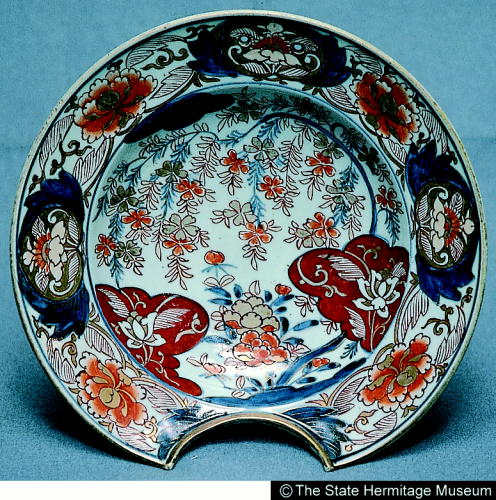 伊万里色絵枝垂桜文髭皿/ Barber's bowl with design of weeping cherry blossoms |