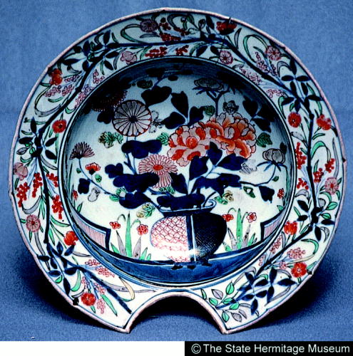 作品名 伊万里色絵牡丹菊文髭皿/ Barber's bowl with design of peonies and chrysanthemums