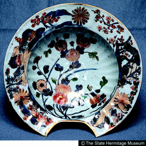 伊万里色絵菊文髭皿/ Barber's bowl with design of chrysanthemums |