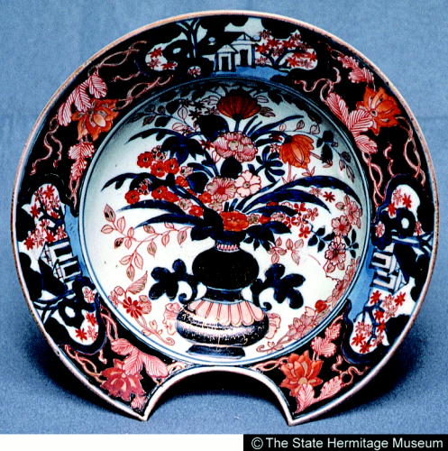 伊万里色絵盛花文髭皿/ Barber's bowl with design of floral arrangement |