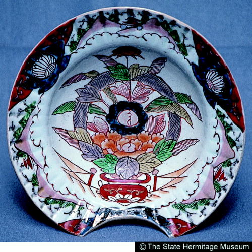 伊万里色絵牡丹文髭皿/ Barber's bowl with design of peonies |