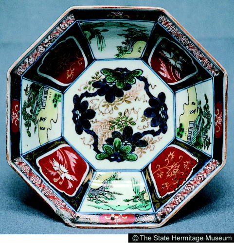 伊万里色絵松藤文八角鉢/ Octagonal dish with design of pine and wisteria |