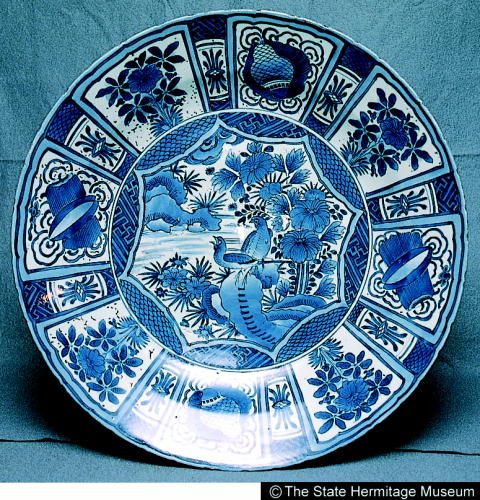 伊万里染付花鳥文大皿/ Large plate with design of birds and flowers |