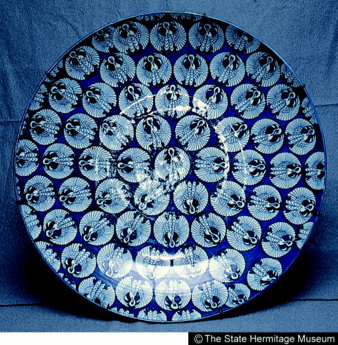 有田染付鶴丸文大皿/ Large plate with design of cranes in medallions |