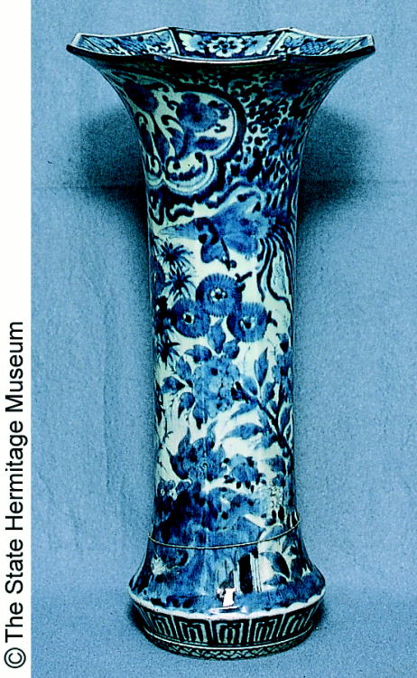 伊万里染付唐獅子鳳凰文八角瓶/ Octagonal bottle with design of Chinese lions and phoenix |