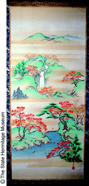 紅葉観瀑図/ Viewing a Waterfall and Maple Leaves |