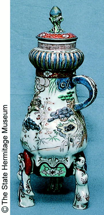 伊万里色絵花鳥文酒器/ Wine container with design of flowers and birds |