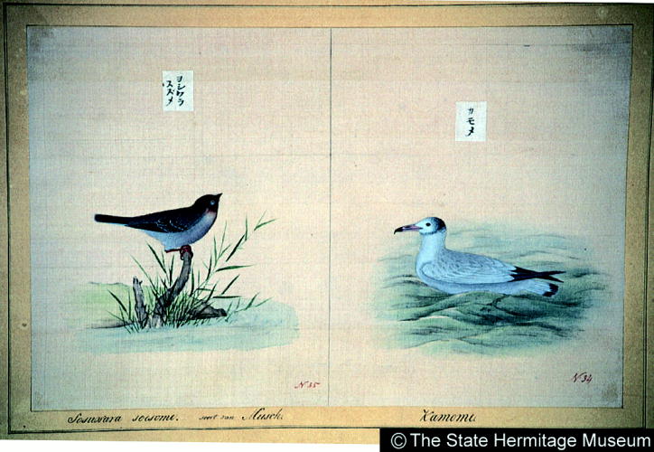 『日本』巻一:鳥(95種) ヨシワラスズメ・カモメ/ Yoshiwara Sparrow/Seagull |
