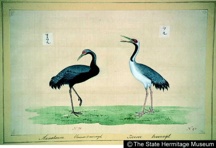 『日本』巻一:鳥(95種) マナツル・ツル/ Manazuru/Crane |