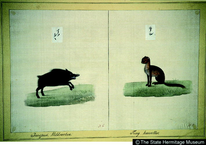 『日本』巻三:動物(30種) 猪・テン/ Boar/Marten |