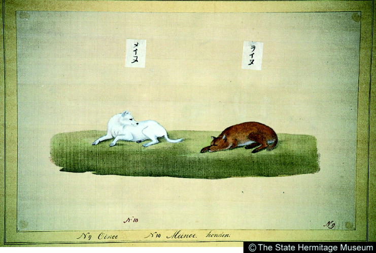 『日本』巻三:動物(30種) 雌犬・雄犬/ Male and Female Dogs |