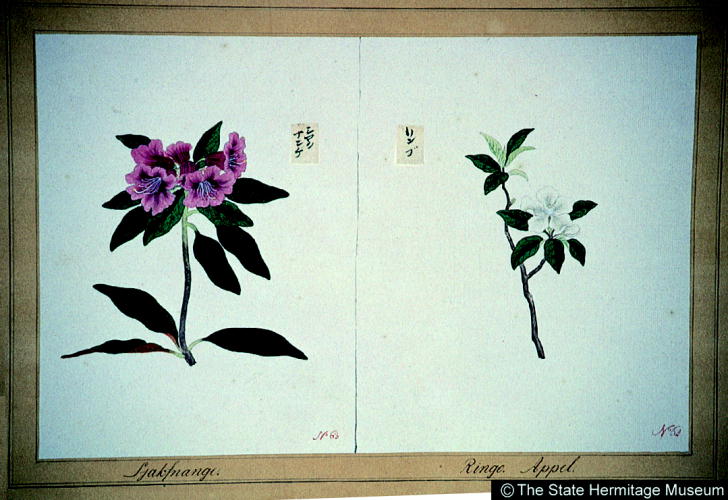 『日本』巻三:植物(100種) シヤクナンゲ・リンゴ/ Rhododendron/Apple |