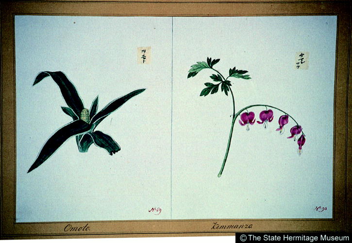 『日本』巻三:植物(100種) ヲモト・ケマンサウ/ Clintonia/Bleeding Heart |