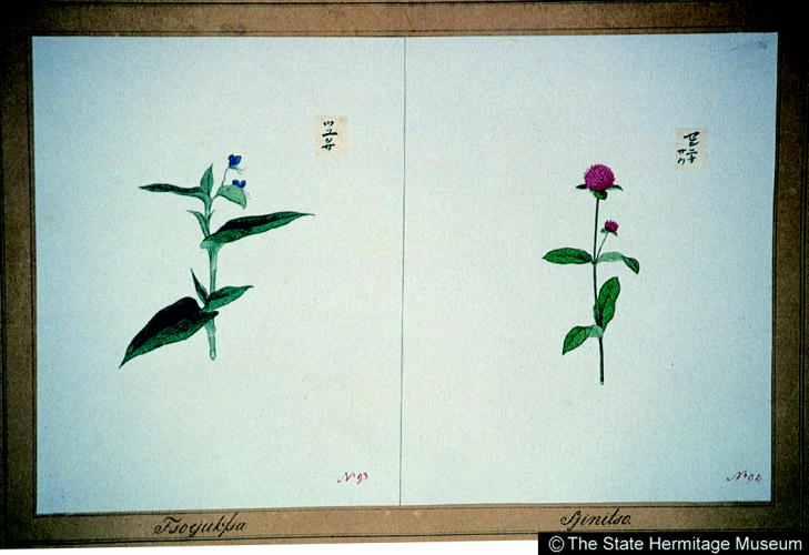 『日本』巻三:植物(100種) ツユクサ・センニチサウ/ Dayflower/Common Globe-amaranth |