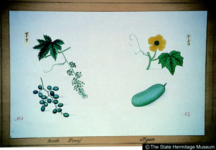 『日本』巻三:果実(40種) ブドヲ・トーグワ/ Grapes/Chinese Watermelon |