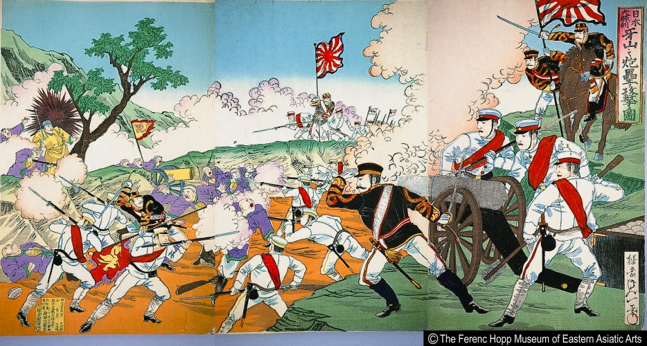 日本大勝利牙山ノ炮塁ヲ攻撃ノ図/ Japan's Great Victory : Attack at Gazan |