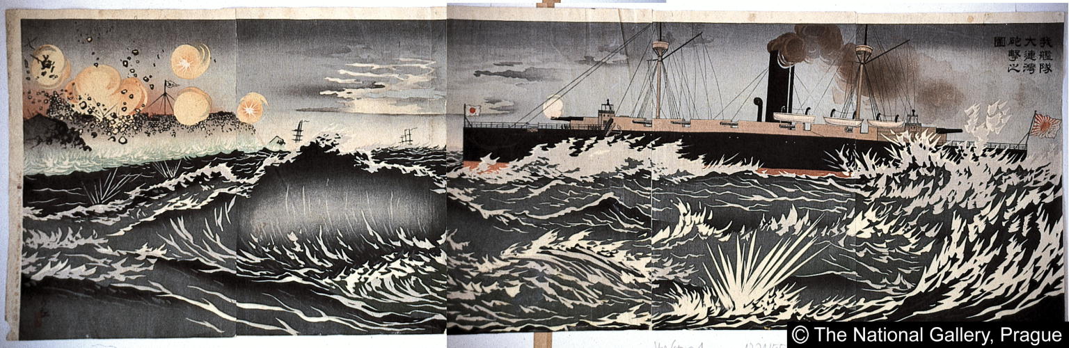 我艦隊大連湾砲撃之図/ Our Forces Bombarding Da-lian Bay |